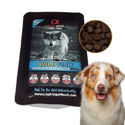 Alpha Spirit Wild Fish 200 g to półmiękka, bezzbożowa karma dla psa z wysoką zawartością ryb morskich. Wspiera zdrowie, odporność i kondycję psa, dostarczając pełnowartościowe białko i lekkostrawne składniki idealne dla psów w każdym wieku.