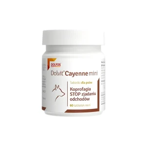 Dolvit Cayenne 60 mini to profesjonalny preparat dla psów borykających się z problemem koprofagii. Tabletki skutecznie zniechęcają do zjadania odchodów, wspierając jednocześnie procesy trawienne i uzupełniając dietę o cenne witaminy oraz składniki naturalne, dbając o zdrowie Twojego pupila.