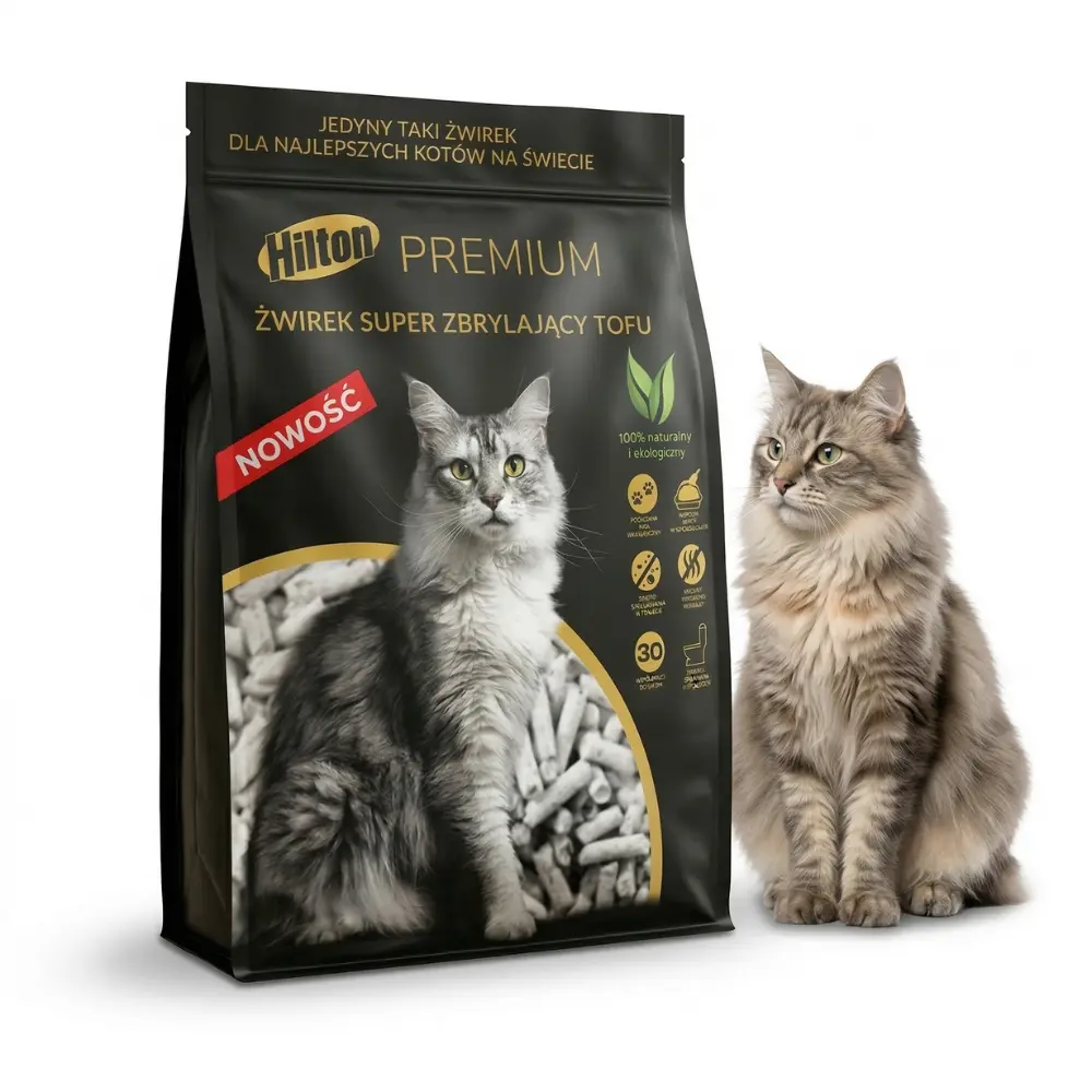 Hilton Premium Tofu 2,5kg to przełom w higienie kociej kuwety. Ten w pełni biodegradowalny, naturalny żwirek roślinny zapewnia błyskawiczne zbrylanie i doskonałą kontrolę zapachów. Formuła przyjazna dla alergików i bezpieczna dla środowiska to idealny wybór dla wymagających opiekunów.