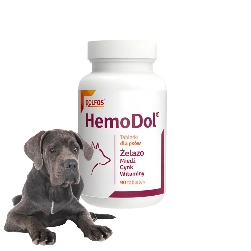 Hemodol Dolfos to preparat dla psa stosowany w stanach niedoboru żelaza i składników wpływających na prawidłową gospodarkę krwi. Zawiera żelazo, witaminy z grupy B oraz witaminę C, wspierając prawidłowe procesy krwiotwórcze.