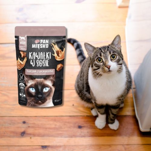 Pan Mięsko to polska marka karm dla zwierząt, stworzona z myślą o potrzebach kotów i psów. Linia Kawałki w Sosie oferuje smaczne i naturalne posiłki bez zbędnych dodatków. Starannie dobrane składniki sprawiają, że produkty Pan Mięsko cieszą się dużym uznaniem wśród właścicieli i ich pupili.